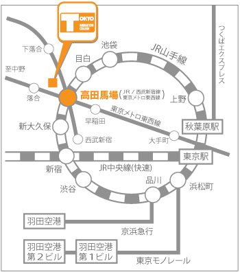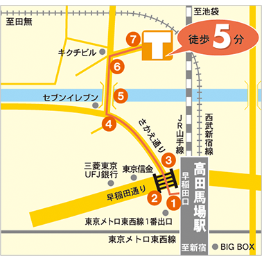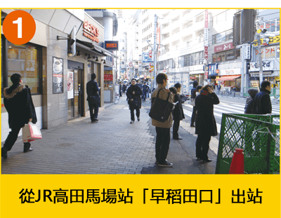 「高田馬場」站的1號或2號出口步行5分鐘即可到達