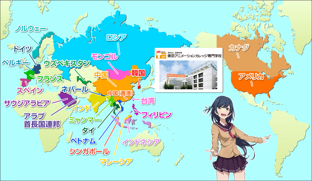 東京(とうきょう)アニメーションカレッジ専門(せんもん)学校(がっこう)では、毎年(まいとし)多数(たすう)留学生(りゅうがくせい)(かた)()()れを(おこな)っており、入学者(にゅうがくしゃ)には【留学(りゅうがく)ビザ】を取得(しゅとく)して(いただ)けます。