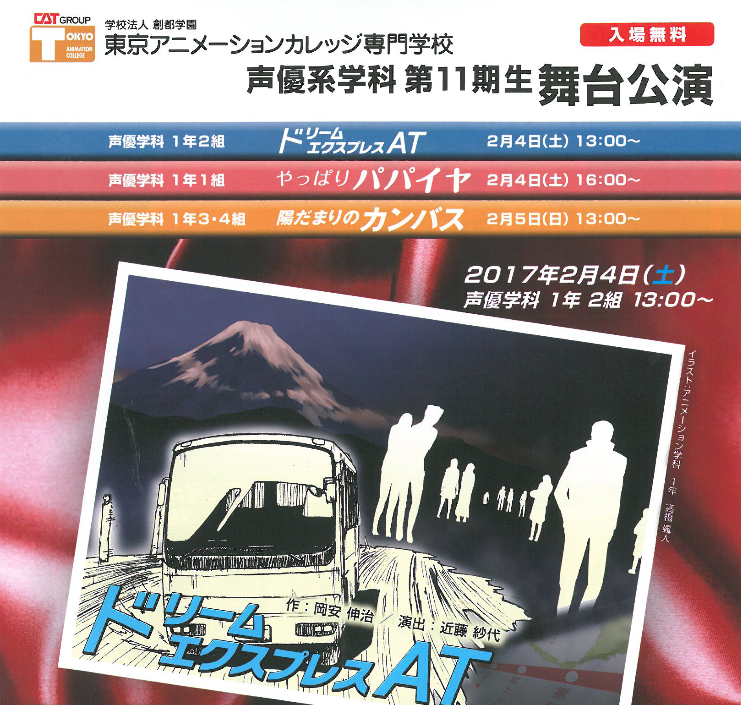 いよいよ明日からの2日間、 アニカレでは声優学科 第11期生の進級舞台公演を上演します! 2月 4日(土)は2組の『ドリームエクスプレスAT』(12:30開...
