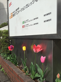 学校の建物前に、かわいいチューリップが咲いていますね!!これは受付の先生が、球根から育ててくださったものなんですよ。朝学校に来るときに、皆さんを元気に迎えてくれ...