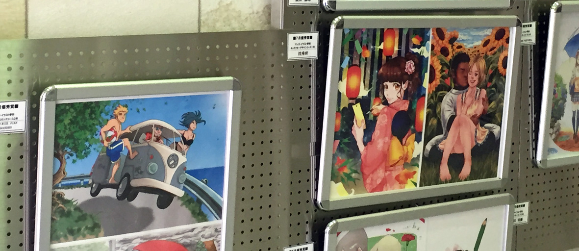 ポストカードコンペの優秀作を入り口脇に掲示して、毎月更新しています 今月の、この横並び!国際色豊かですよ。 左からスペイン出身のビラートさん、韓国出身のシムさ...