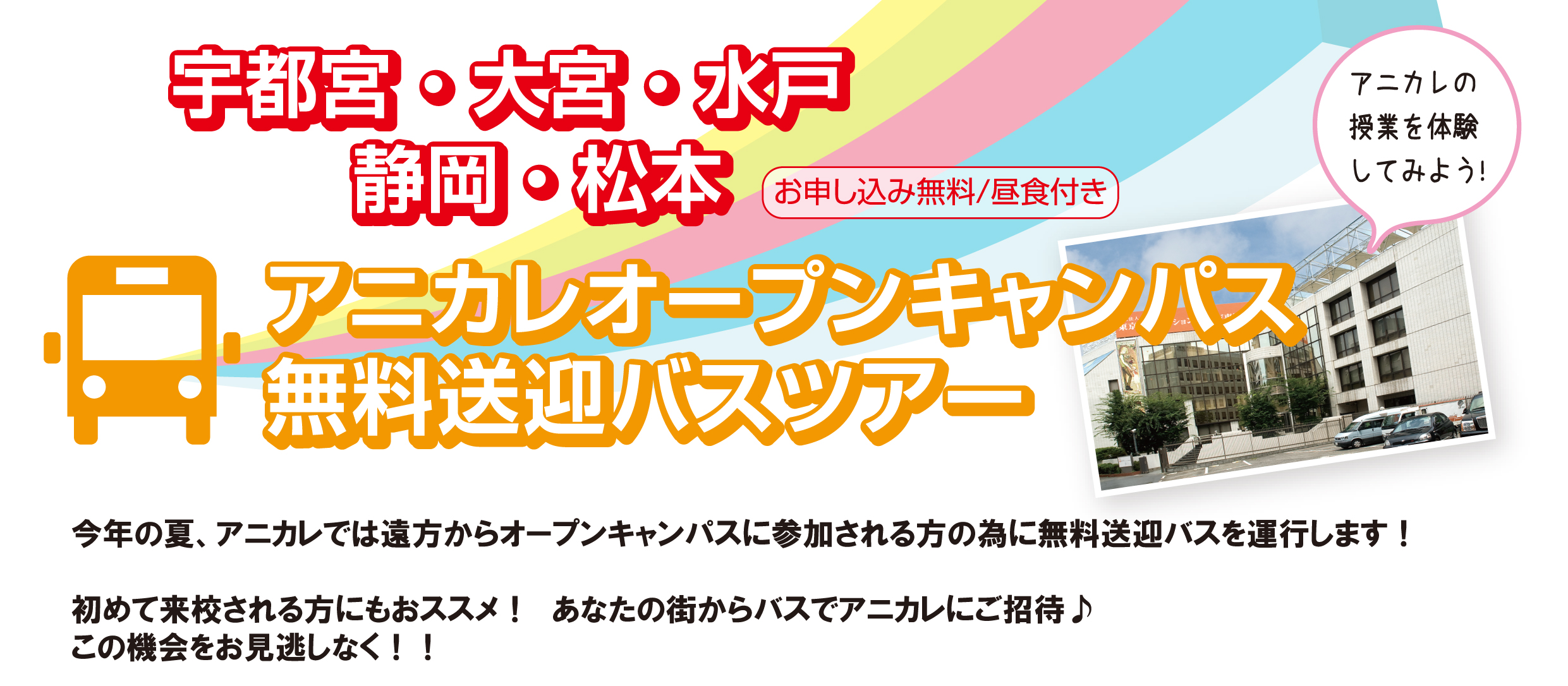 バスツアーお申し込みはコチラ! 8/7 宇都宮・大宮コース 8/14 水戸コース 8/7 宇都宮・大宮の日の体験授業はコチラ! 発...