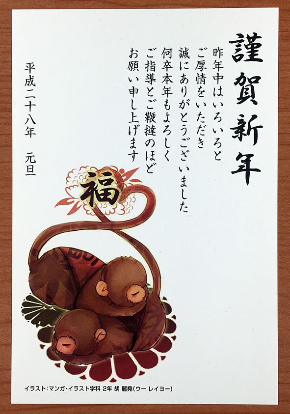 年賀状と卒業公演フライヤー、とても重要な印刷物二点のイラストにキャラクターデザインコース2年の胡 麗堯(ウーレイヨー)さんのイラストが採用されました。 201...