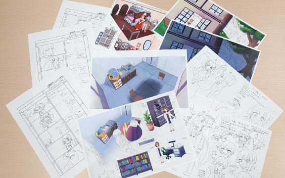 絵コンテやキャラクター設定といったアニメーションの設定資料を作成する方法を学び、実際にオリジナルアニメーション企画を進行していきます。