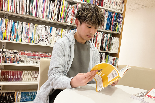 資料室で人体のデッサンや服装の参考書を読み漁っています。勉強になる本がたくさんあるので、授業以外でも基礎の勉強ができてとても便利です。